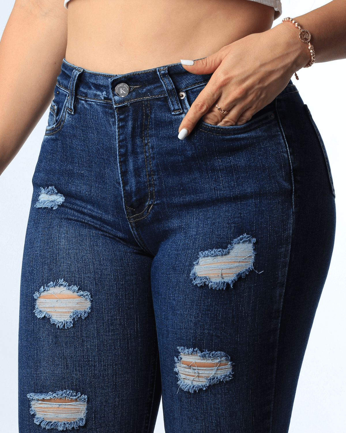 Para mujeres seguras y con carácter, estos jeans ajustados con rotos decorativos son la declaración de estilo que buscabas. Su silueta estilizada acentúa tus curvas, mientras que los detalles desgastados le dan un toque atrevido y moderno. Perfectos para looks con carácter, combinan a la perfección con chaquetas de cuero, blazers o tops minimalistas. Jeans que hablan por ti, ideales para marcar tendencia con cada paso.